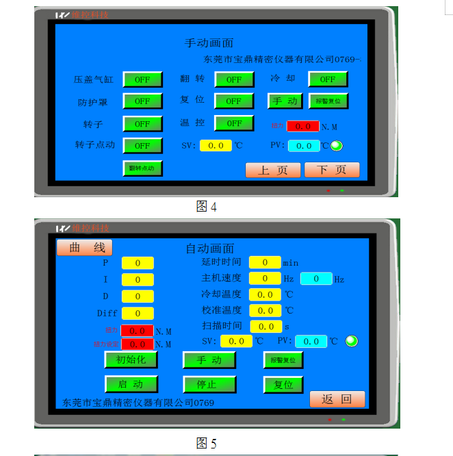 如圖4,在此頁面中,操作者可手動操作轉子,翻轉,冷卻等功能,點按下頁,