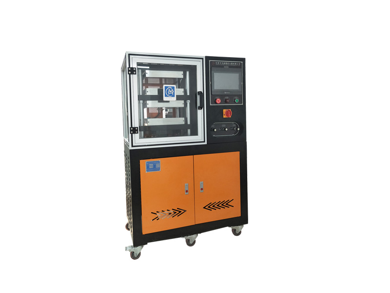 將原料放于鑄模內,夾于本機電熱平板間加以壓力及溫度,使原料成型,以供試驗,做為工廠大量生產配料之依據。本機裝有PLC程序控制彩色觸摸屏,人機界面作業系統可設定壓力、溫度、時間和排氣次數,硫化過程實時顯示和監視,所設模壓程序全數自動完成。