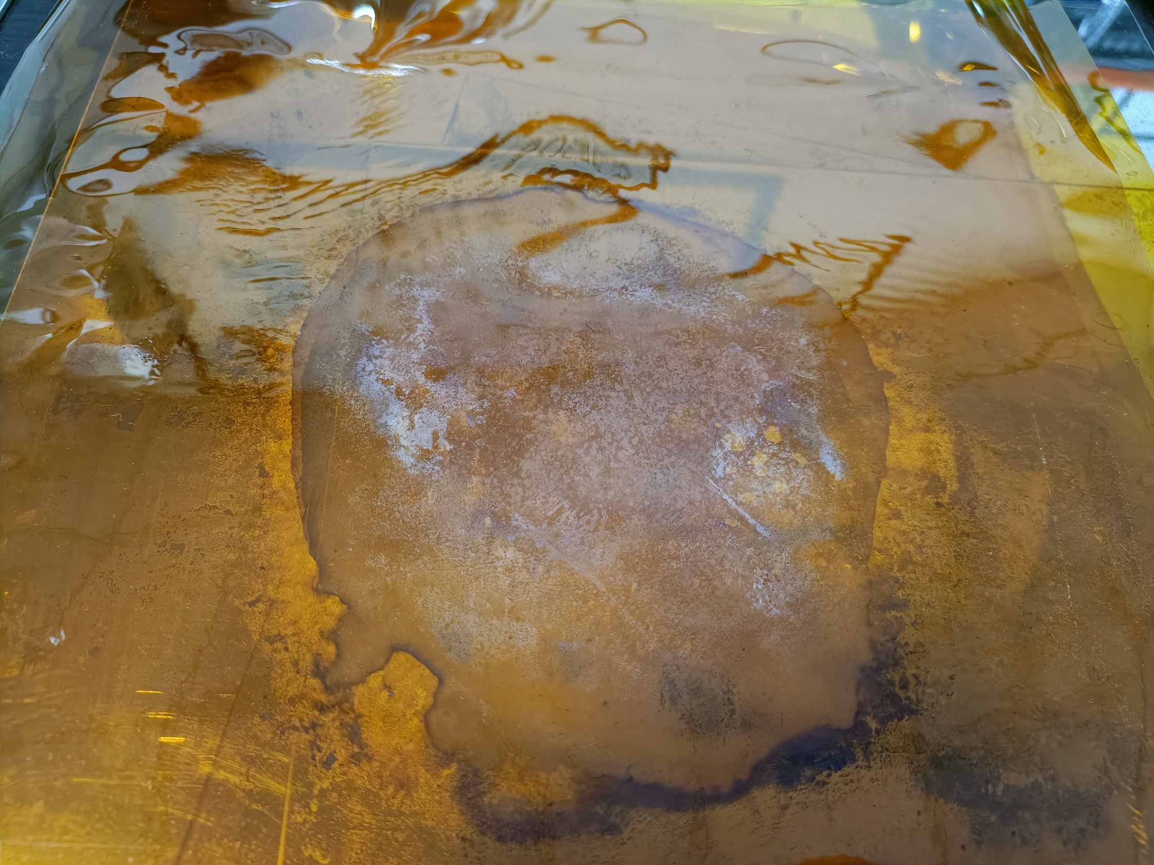 實驗室二:2g,溫度240度,預壓1分鐘,冷卻3分鐘,增壓140分鐘,結果:糊了
