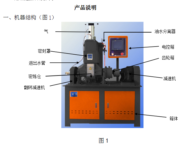 0.5升密煉機是由轉子混煉室、加料及壓料裝置、卸料裝置、傳動裝置、密封裝置、潤滑系統氣動和液壓系統、加熱和冷卻系統及電氣控制系統組成。密煉機的混煉室是由一個斷面為∞形的密封空腔,內裝一對轉子,轉子兩端有密封設置,以防止物料從轉軸漏出,混煉室上部有加料及壓料裝置。加料裝置由一個門形加料口和翻板門組成。壓料裝置由上頂栓和氣缸組成,上頂栓與活塞桿及活塞相連接,卸料裝置設在混煉室下部,由下頂栓開閉裝置與鎖緊裝置組成,翻轉門的開閉,上頂栓的提起與壓下均由氣動系統操作。密煉機在工作時,混煉室內壁,轉子、上頂栓和下頂栓均須加熱或冷卻,因而配置有加熱和冷卻系統,加熱介質一般為電熱,冷卻介質為自來水冷?;鞜捠业姆D是由電機通過擺線減速和蝸輪蝸桿組合驅動,從而可以使密煉倉翻轉一定的角度卸料和清洗轉子。