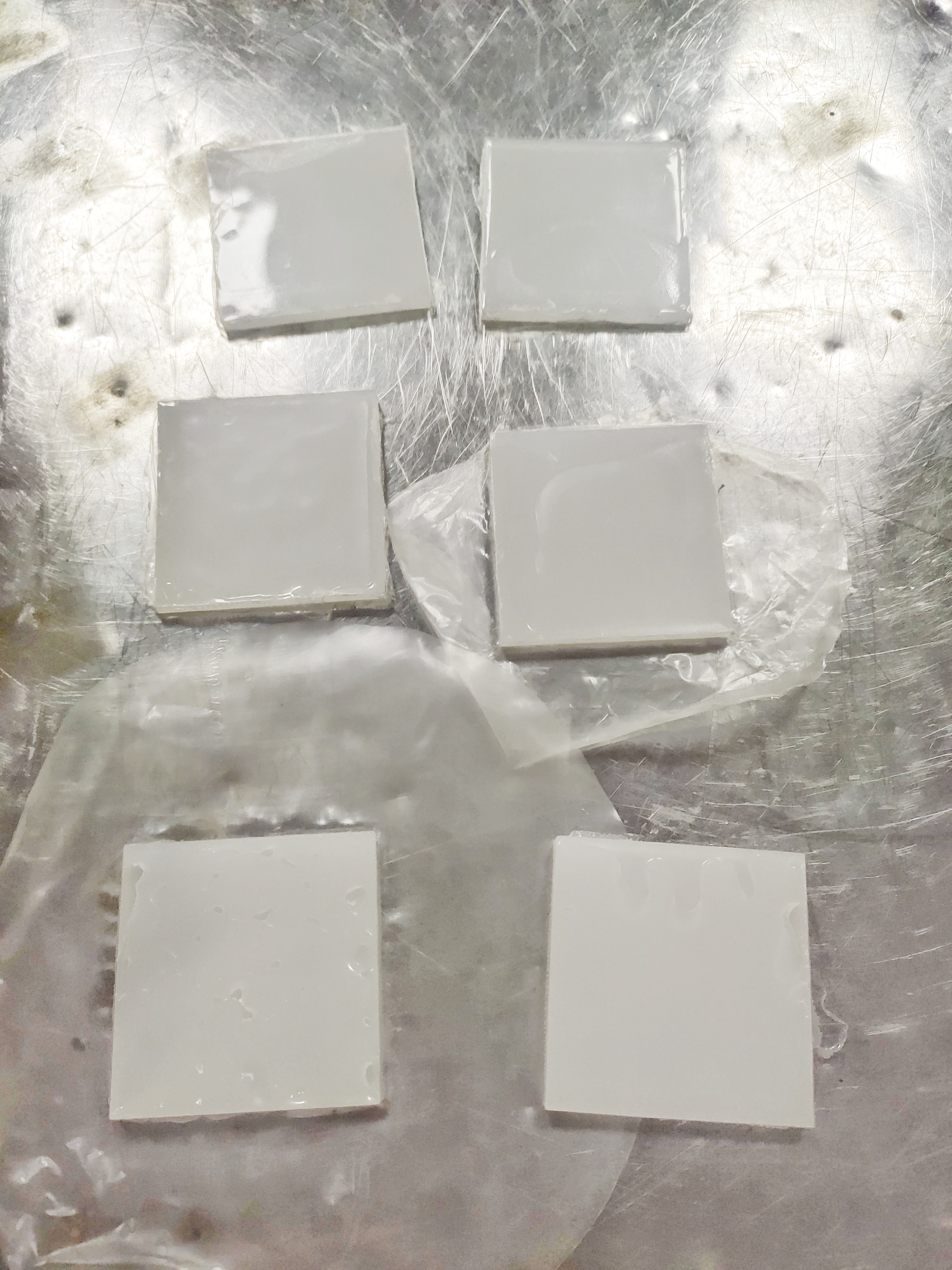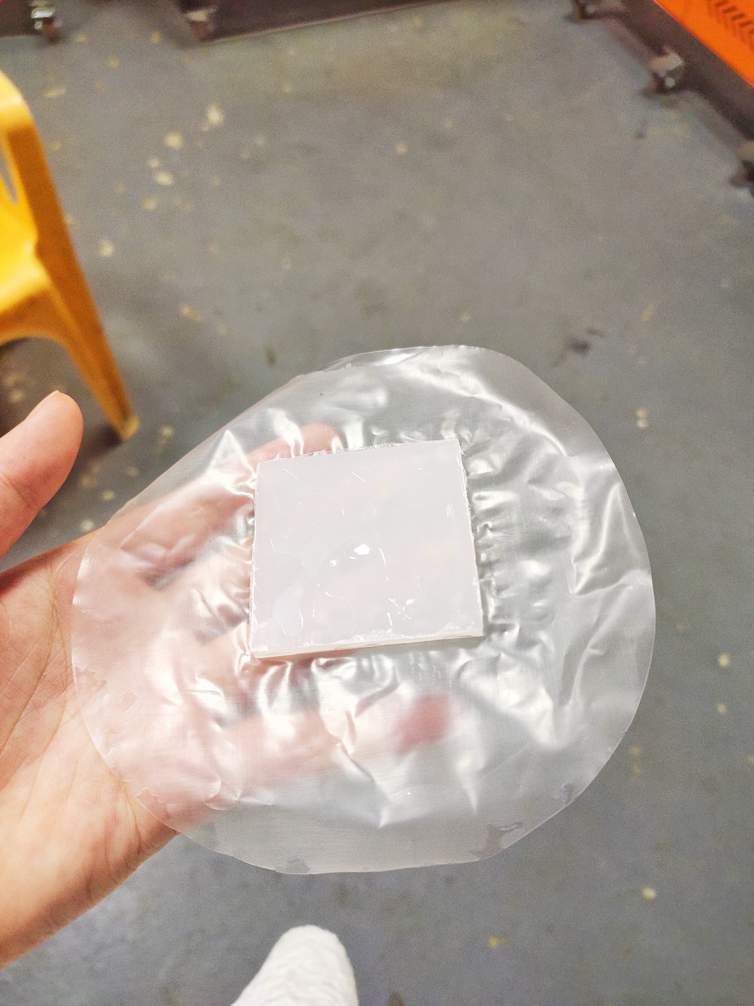 原料8.2克,溫度150,預壓1分鐘,排氣3次,增壓2分鐘,